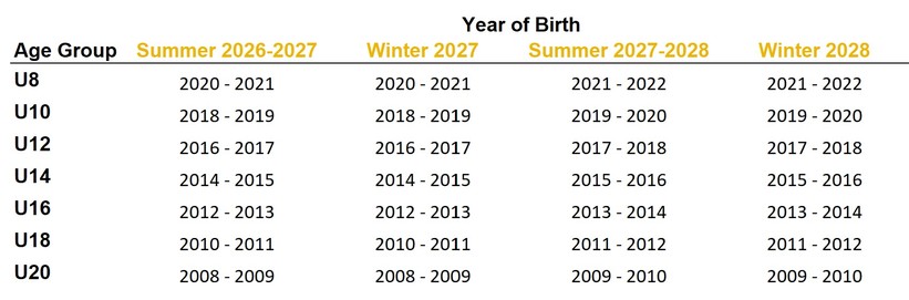 Basketball is split into two seasons, Summer & Winter and we have two main intakes commencing the last few weeks of the school term 1, and term 3. Our coaching panel, review registered children first and allocated them into new teams depending on the year of their birth as per the below tables